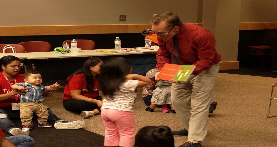 Thriving at Three not only teaches school readiness to at-risk Latino families but also helps program participants, like Junior’s family, build home libraries. The presence of books in the home is highly correlated with children’s academic achievement and future success. The book-give-away initiative gives families the opportunity to build an age-appropriate home library collection by the end of the school year.